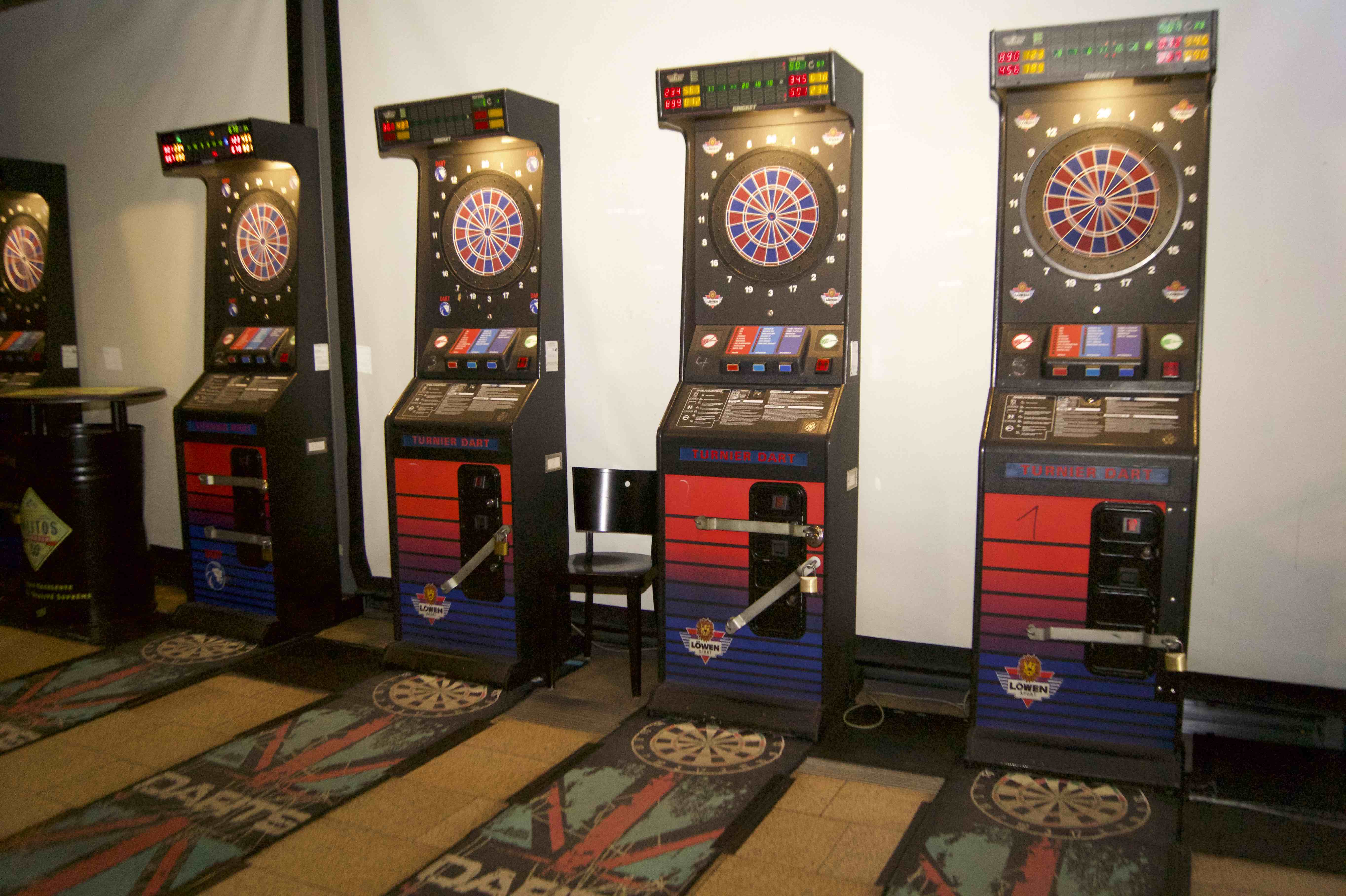 In unserem Dart-Center stehen 9 E-Dart-Boards von Löwendart mit vielen Spieloptionen.